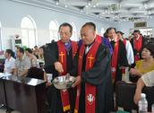 感恩崇拜之后,甜水教会还举行了献堂感恩典礼。献堂典礼上,朴桂峰牧师分享,教会是建立在对耶稣是基督的告白之上,敬拜是以耶稣基督为中心,牧养是在上帝爱中的牧养。在随后的洒水仪式中,沈光纬牧师带领盘锦教会的牧者们,沿教堂内部环绕一周,为这座新建成的教堂向上帝祈求祝福。