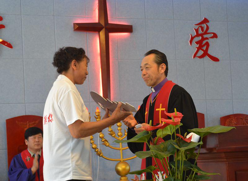 在交接钥匙仪式上,众多牧者分别双手托起那把象征属灵权柄的钥匙,一一向上帝祈求祝福,最后由沈光纬牧师交在甜水教会负责人郑凤琴姊妹的手中。随后,郑姊妹介绍了甜水教会建堂的情况。郑姊妹2000年信主,因为当时教会比较简陋,不久后就搬到了郑姊妹的家中。郑姊妹于2005年开始负责教会的工作,后来开始建造这座教堂。“十字架在甜水这片土地上高高举了起来,”郑姊妹非常兴奋的说。