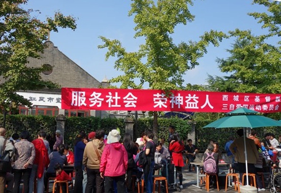 近日,北京市基督教会缸瓦市堂举办一年一度的社会服务日,为会众和附近居民提供中医按摩、理发、法律咨询、健康理疗、等多项服务。