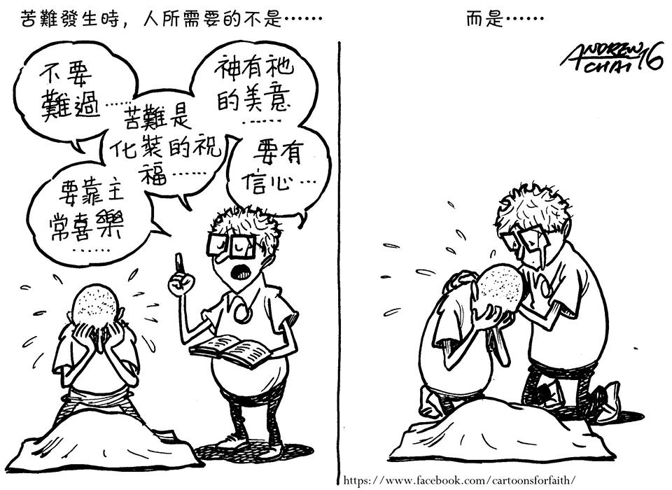 漫画被称为“第九艺术”,与“文学”和“电影”等并列,时常用简单而夸张的手法描绘生活中的故事。本文收集蔡颂辉(Andrew Chai)牧师近期漫画作品,本站蒙允转载与弟兄姐妹分享。蔡颂辉牧师更多漫画作品欣赏:蔡颂辉的粉丝专页