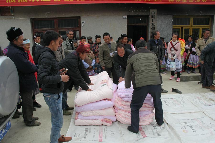 聚会结束,贵州省基督教两会主任、会长杨朝云牧师安排几位青年人把这些包裹分类打开,一床床崭新的棉被、被套、毛毯和衣服被展开,现场洋溢着说不尽的喜悦之情。
