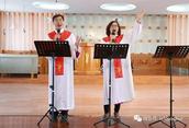 首先,宋教师带领会众为本次的崇拜同心献上祷告。接下来,谦卑诗班献呈了舞蹈《永活全能的神》,欢快的旋律、优美的舞姿令每个肢体灵里振奋,同心敬拜复活主。