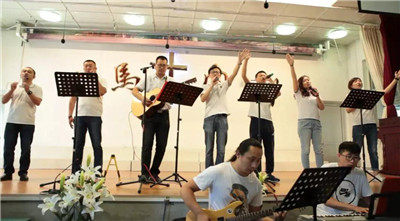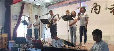 6月16日周六下午一点,灵泉音乐事工开始了敬拜赞美。赞美会以原创歌曲《走进圣殿之门》开场,并先后献唱了《让我说声谢谢你》《颂赞荣耀归我主》《耶和华你是我的神》《我的心你要称颂耶和华》《一粒麦子》《回家》《你的爱不离不弃》《如鹰展翅上腾》和结束曲《新的异象 新的方向》。感恩神的同在、圣灵的感动和带领,台上台下的彼此问候、齐声赞美融为一体,或笛声琴声悠扬、鼓声阵阵,或歌声嘹亮掌声拍响,整场赞美会气氛或平静舒缓,或激情高昂,弟兄姊妹无不口唱心和,归荣耀与主!