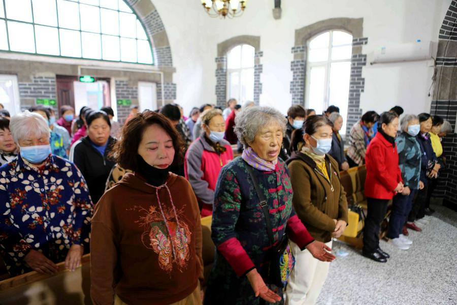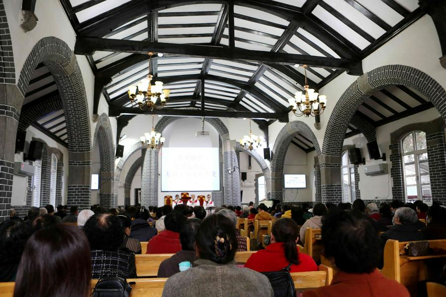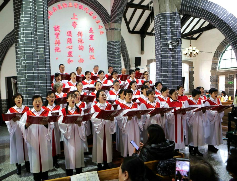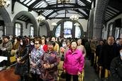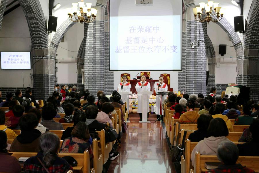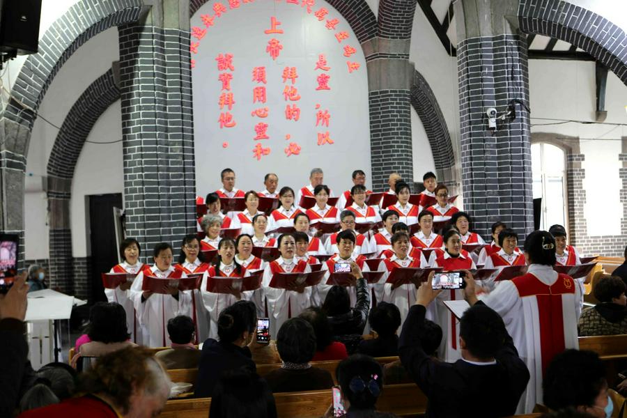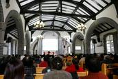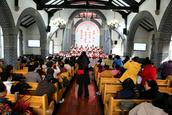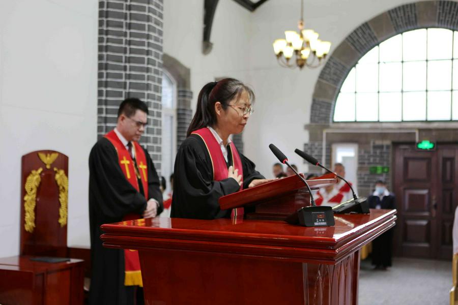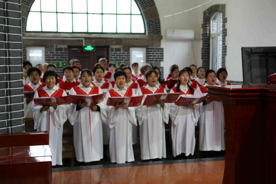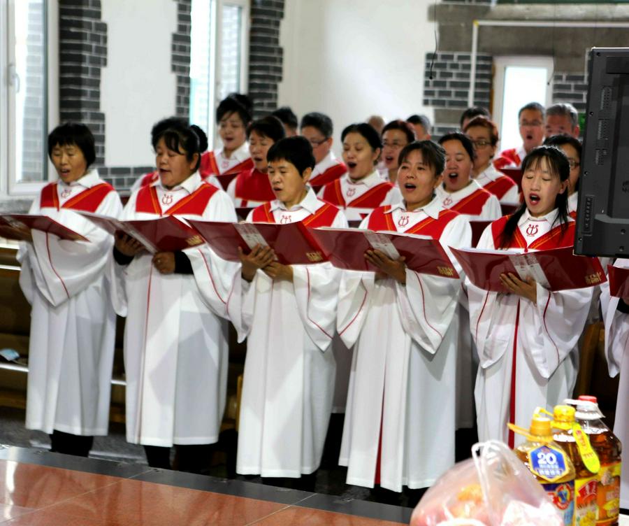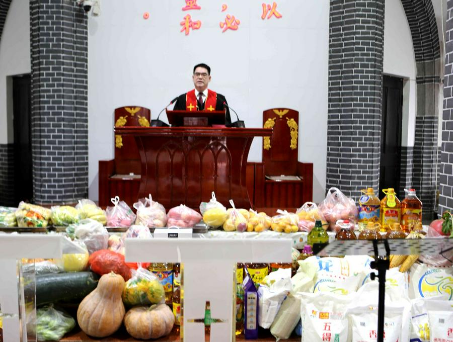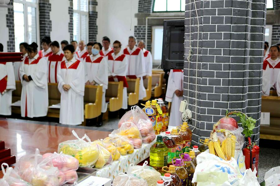 在会众的赞美之中,教会诗班的弟兄姊妹向圣三一的神献诗《将最好的献主》《收成归天家歌》《秋收不忘主恩典》等,表达感恩之情。