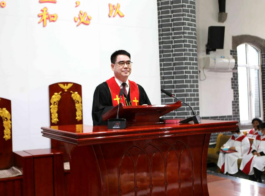 今天的感恩节崇拜活动由张娜牧师司会并带领祷告。辽宁省基督教三自爱国运动委员会副主席、辽阳市基督教协会会长、本堂负责人王润涛牧师身着圣服登上圣台,他亲切地问候弟兄姊妹感恩节喜乐,带领会众恭读圣经箴言3章9—10节经文:“你要以财物和一切初熟的土产尊荣耶和华。这样,你的仓房必充满有余,你的酒榨有新酒盈溢。”然后,以《常存感恩的心》为题,为主证道。王牧师说,我们要感恩神、感恩父母,凡事谢恩。什么叫“凡事”呢?就是无论什么事都要感恩,无论是好事、坏事,经历什么,都要向神感恩。凡事信神的人才是懂得感恩的人。感恩节是我们表达我们内心对神的感恩,也就是说越感恩才能收获越多。无论是道路上的坎坷还是生活上的艰难,在环境当中,你要能存感恩的心;在逆境中还能感恩的人,这才是真正有属灵生命的人。不仅如此,王牧师还劝勉信徒要感恩自己的父母,包括岳父、岳母、婆婆、公公等长辈,跟父母的关系好了,就是跟神的关系和好;跟上帝的关系好,就不会有恨,就会充满爱。