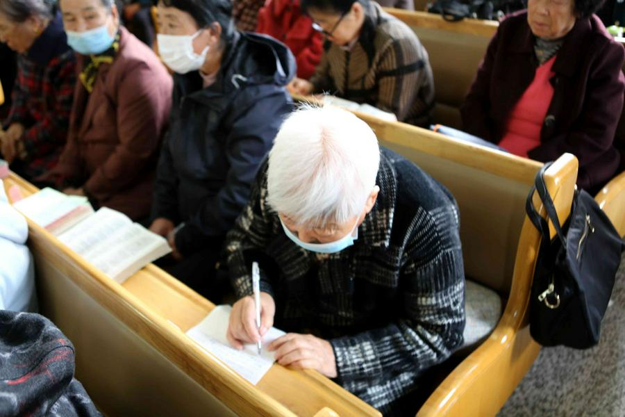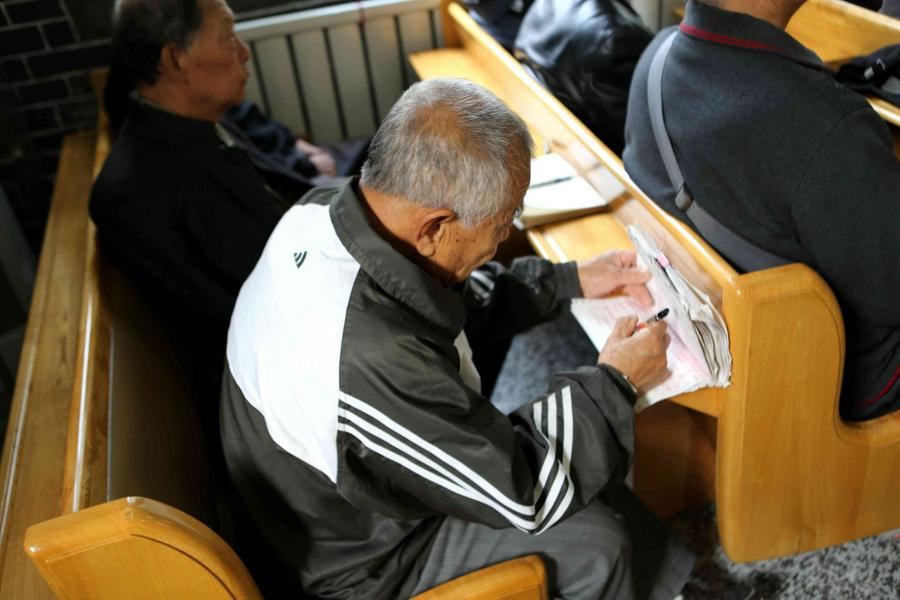 王润涛牧师的证道获得了全场的热烈掌声,荣耀归于上帝。我看到会后还有信徒找到牧师请教感恩的事情,并认真地记录。