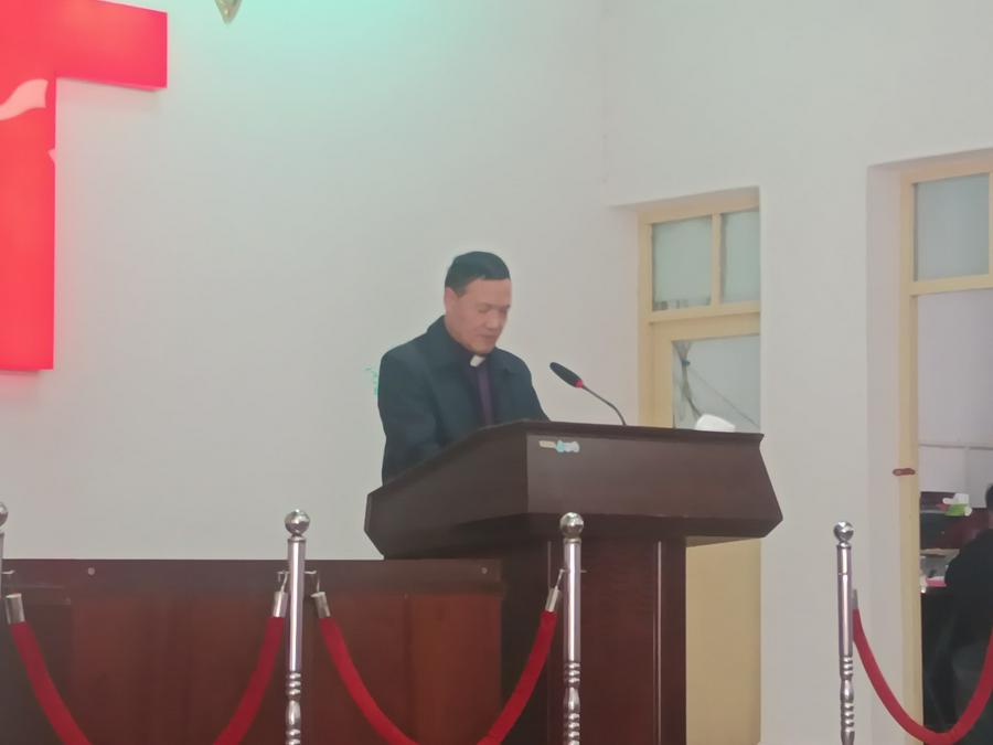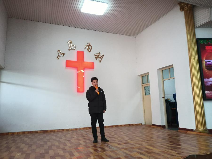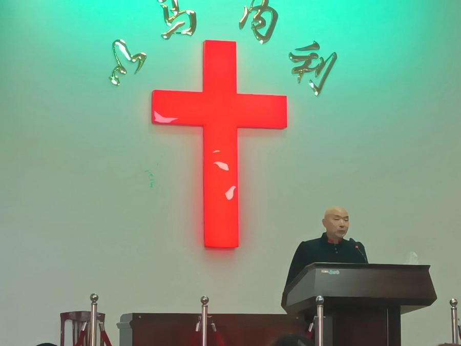 14:00,在杨水霞姊妹主持下,聚会继续有序进行。首先是老年诗班登台献唱了《十的救赎架》《十字架的爱》二首赞美诗歌。其次是张牧师接着上午“圣灵引导”主题,讲了下篇《圣乐如何来引导》,仍然是讲了七大部分:一、圣灵话语;二、圣灵说话;三、灵里指示;四、异梦异象;五、心里负担;六、领袖认可;七、环境印证。三是王江莲长老继续作了《耶稣面对十字架的意念——救人》的证道。