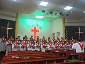 上午8:30,宝鸡福临堡教会主堂已传出赞美歌声。当你拾阶而上步入主堂,你会看到有位姊妹正在为早到的会众教唱赞美诗歌《受难歌》。“至圣之首受重创,希世痛苦难当;遍压荆冠皆耻辱,讥评、嫌怨、忧伤……”低沉的旋律、悲伤的歌词,仿佛把现场的人们带到了二千年前的场景,更是仿佛看到遍体淋伤的我主耶稣,背负着沉重的十字架,在一群兵丁呵斥声中,一步、一步朝各各他山顶走去……当年主耶稣是为了拯救我们这些罪人,而舍命于高高的十字架,今天我们来教会崇拜聚会就是为了纪念祂!