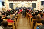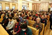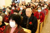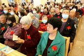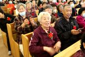 “白发是荣耀的冠冕,在公义的道上,必能得着。”今天的九九重阳节活动在伯特利教堂内举行,参加活动的父老乡亲有500多人,其中70岁以上的老年肢体有400多人。当他们来到教堂的正门,服务组的同工们亲切地问候他们节日快乐,并且给他们每个人在胸前佩戴一朵鲜花,表示节日的祝贺。赞美会前,弟兄姊妹们按照小组依次坐好,跟随诗班的姊妹赞美,营造出了浓厚的节日氛围。