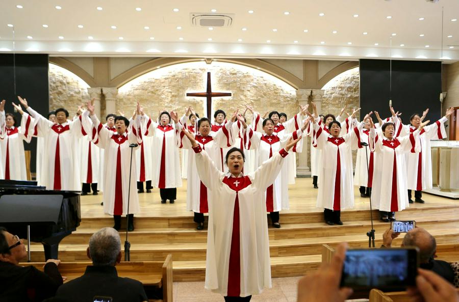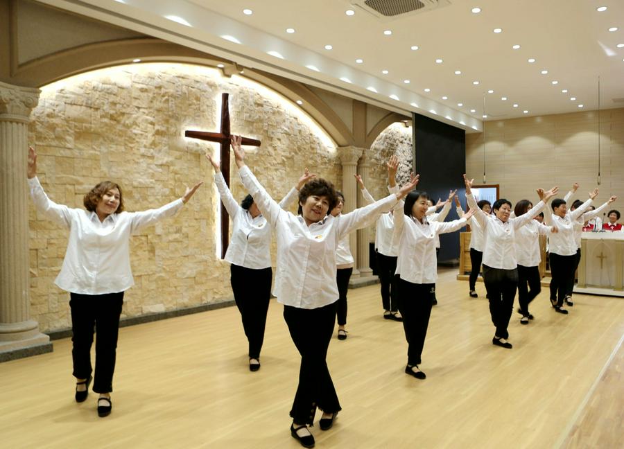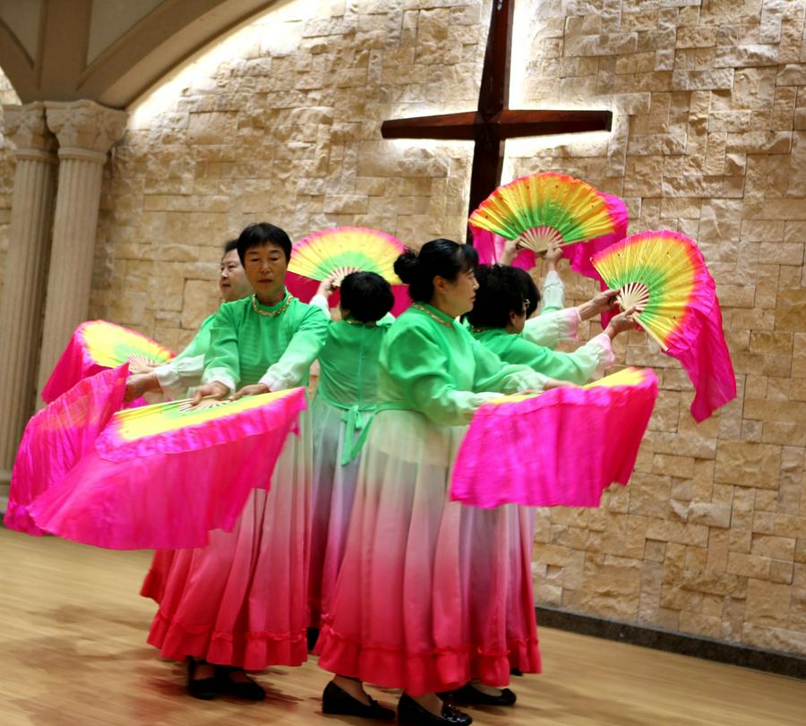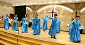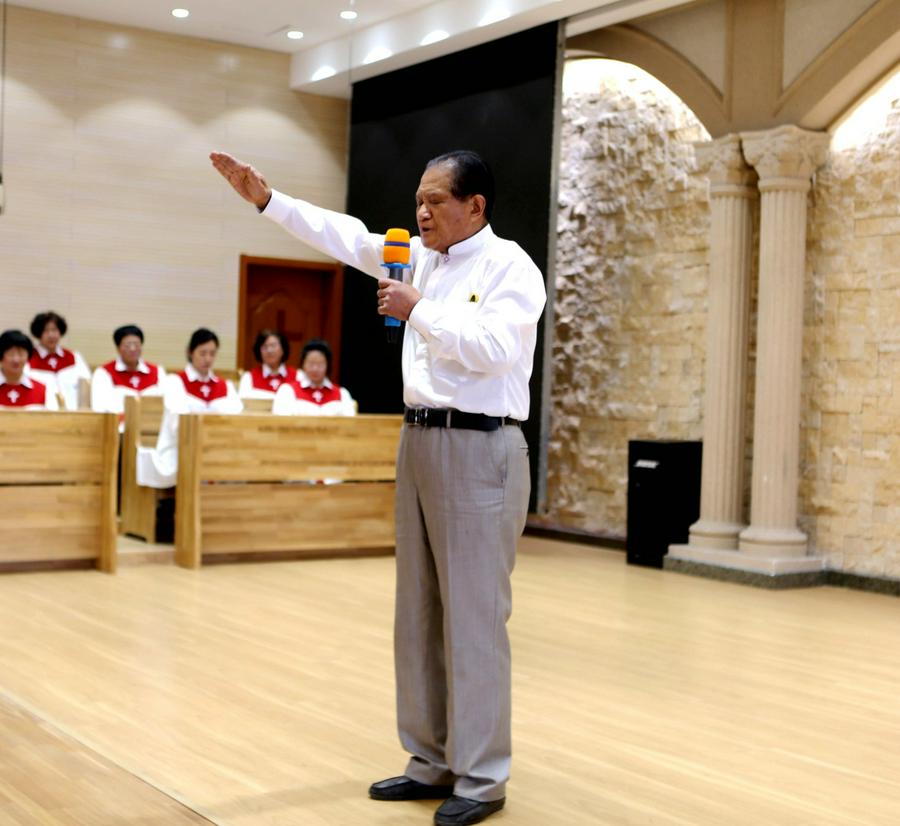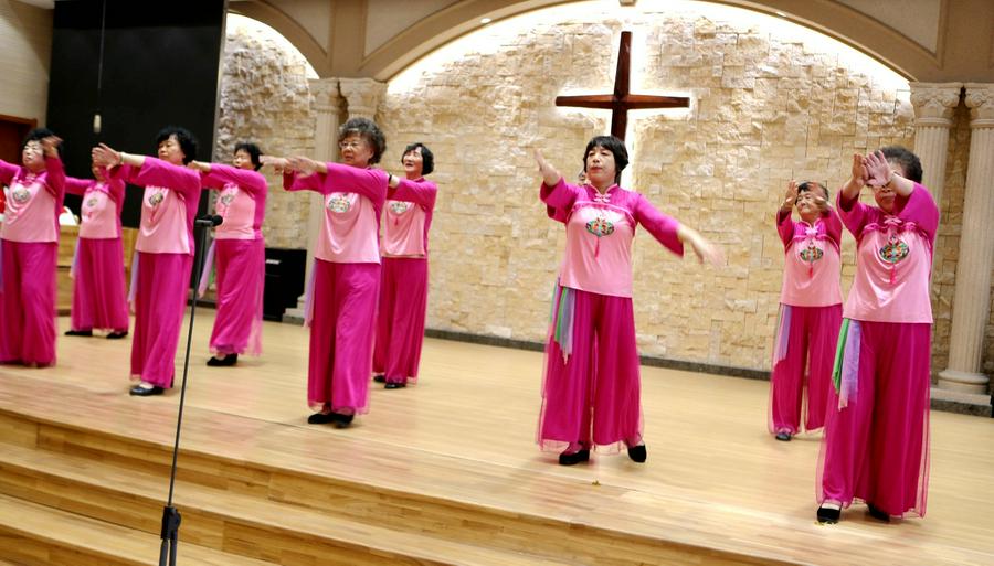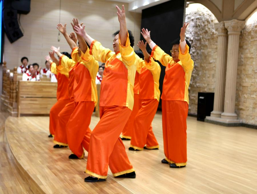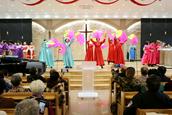 今天的活动中,还特别安排了约书亚团契老年人的才艺展示环节。随着主持人闪亮登场,赞美诗的响起,约书亚各组长的集体开场舞蹈《祝福你我的中华》,向三一的真神上帝献祭。参加表演的老年信徒们身着节日的盛装,脸上洋溢着幸福的笑容。他们预备了12个节目,用歌声和舞蹈表达了对上帝的感恩和对生活的热爱,展现了老年人如鹰展翅、壮心不已的活力与热情。在载歌载舞的赞美中,退休的老服侍同工和组长大合唱《我们在基督里》《在主里祝福你》。作为“压轴”的赞美诗歌,周凤楼长老亲自在现场指挥。特别是当《在主里祝福你》的合唱响彻在圣殿的时候,全场500多位弟兄姊妹同声合唱,非常感人和震撼。在这退休老服侍同工和组长的大合唱中,年龄最大的姊妹都已经90岁了,还在精神焕发地赞美我们的真神,赢得了全场肢体的热烈掌声。