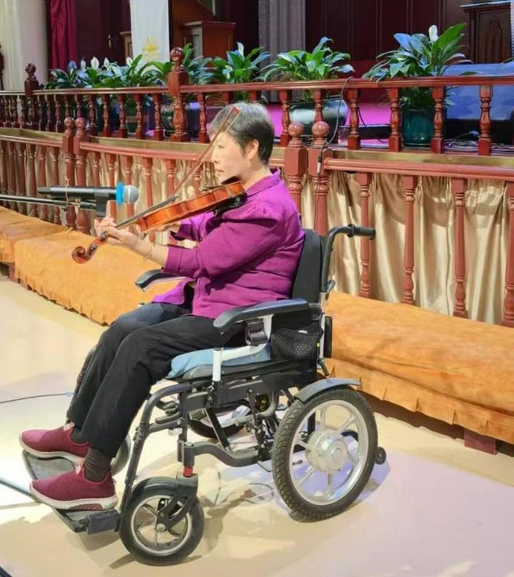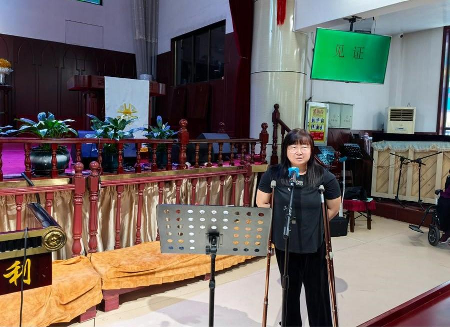 残障肢体马新芳、索海松、靳星星先后分享了自己的蒙恩见证,他们因着信仰而变得积极阳光。姊妹会负责同工马三平执事分享了自己带领团队以及参加爱心志愿助残服务的感受,她感动地说,在服侍中看到了残障群体顽强不屈积极向上的精神。他们的精神激励着我们,成为我们侍奉的力量,使我们更加以满腔热情爱神爱人,成为更多人的祝福。