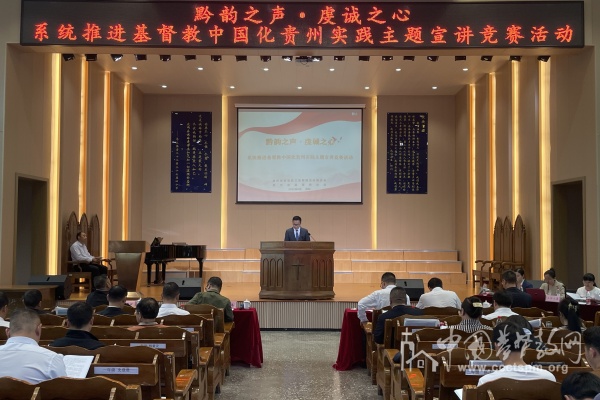 2025年6月26日上午,贵州省基督教两会在贵州圣经学校举办“黔韵之声·虔诚之心”系统推进基督教中国化贵州实践主题讲道交流活动。省基督教两会班子成员、各市(州)基督教两会主要负责人、贵州圣经学校全体师生、贵州基督教中国化读书班成员、宣讲团成员、讲章作者等约200人参加活动。本次活动评审团由省基督教三自爱国运动委员会主任罗应富牧师、省基督教协会会长杨明祥牧师、省基督教三自爱国运动委员会副主任周仕忠牧师、省基督教协会副会长兼总干事晏林斌牧师等5人组成。