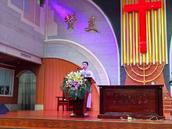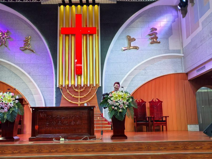 上午9:30,在主持人陈剑弟兄带领大家宣信《使徒信经》后,开始了易莲梅长老的一堂证道。她以圣经哈该书2章3节和9节为依据,围绕“这殿的荣耀”这一主题,用了二个多小时,讲了三大部分。一、这殿先前的荣耀。1.以神家为营,单纯爱主。2.神恩引领,历经三个神家:a.马可楼的神家——马道巷;b.经二路的神家——人民商场后面;c.经一路的神家——现在粗粮王商家旁边。三座圣殿:a.曙光教会第一座圣殿——曙光路日杂公司三楼;b.曙光教会第二座圣殿——水上板房圣殿;c.曙光教会第三座圣殿——今日的荣美圣殿。二、这殿现在的荣耀。1.同心合意建造圣殿;2.心存敬畏全然爱主。三、这殿后来的荣耀在哪里?1.在持守真理的纯正信仰中;2.在广传福音的使命中;3.在爱神爱人甘心把自己摆上的肢体中。4.在肯把自己奉献用于承接使命的年轻人身上。