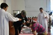 下午二时,圣餐礼拜庄严举行。牛天平牧师以《活出基督的生命》为题,劝勉众信徒要活出耶稣基督的新生命来,并带领信徒回顾耶稣设立圣餐的场景:“这是我的身体,为你们舍的”“这杯是用我血所立的新约”。信徒们依次领受饼和杯,纪念基督在十字架上的牺牲,同时宣告“我们是基督的身体,彼此相连”。