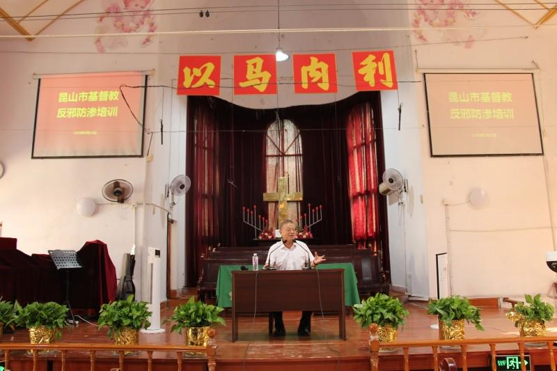 会上,昆山市公安政保大队教导员沈平、昆山市公安政保大队副大队长孔德恩,从宗教政策、境外利用宗教渗透、反邪教以及在反邪防渗工作中应当遵守的基本原则等方面进行了分析与讲解,并对冒用基督教名义的一些邪教组织的活动进行了详细剖析,同时也结合昆山市基督教实际情况强调了各堂所应如何开展反邪防渗工作。