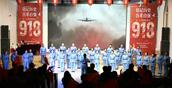 晚会结束后,与会领导与全体演职员合影留念,镜头定格下一张张热泪盈眶却坚毅昂扬的面庞。