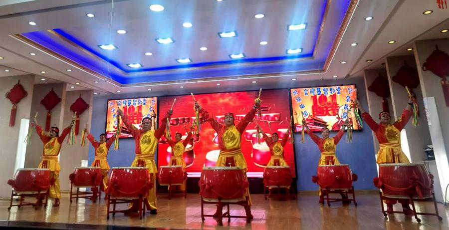 宣讲结束后举行了新中国国庆节文艺汇演。教堂内张灯结彩,红色的国旗与象征信仰的装饰交相辉映,教堂两个诗班、管理组织的弟兄姊妹们怀着喜乐与感恩的心情,将精心筹备的节目一一呈现,用歌声、舞蹈与朗诵,向新中国七十六周年华诞献上最真挚的祝福。