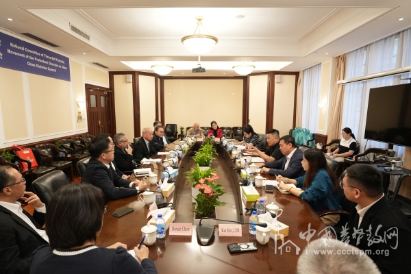 2025年9月21日,马来西亚圣经公会总干事马修·普努斯牧师(Rev Mathew Punnoose)、联合圣经公会中国事工部联合主任刘文良博士等一行13人到访中国基督教两会,中国基督教三自爱国运动委员会驻会副主席单渭祥牧师、中国基督教协会驻会副会长耿卫忠牧师等接待了访问团。