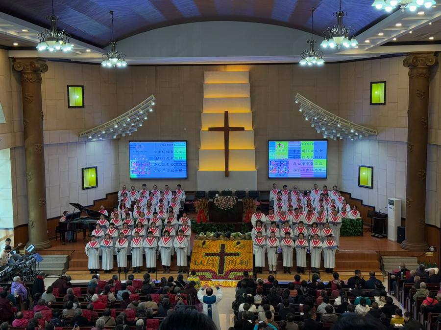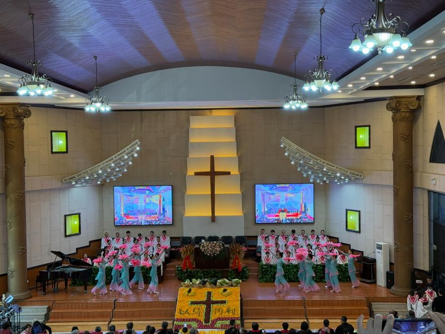 此外,崇拜结束后,教堂还为一对新婚夫妇举行了婚礼,新人在上帝和会众面前立下神圣的盟约,为“四喜临门”增添了浓浓的喜悦。