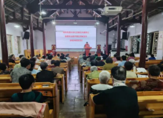 近日,安徽省亳州市蒙城县委政法委开展反邪教宣传进教堂活动,一场别开生面的反邪教课在这里温情开讲,为群众筑起一道抵御邪教侵蚀的防火墙。